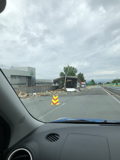 事故 中央道 下り一宮御坂ic 甲府南icでトラック横転事故のため通行止め 野菜が道路に転がってる 現地の画像や動画まとめ まとめダネ