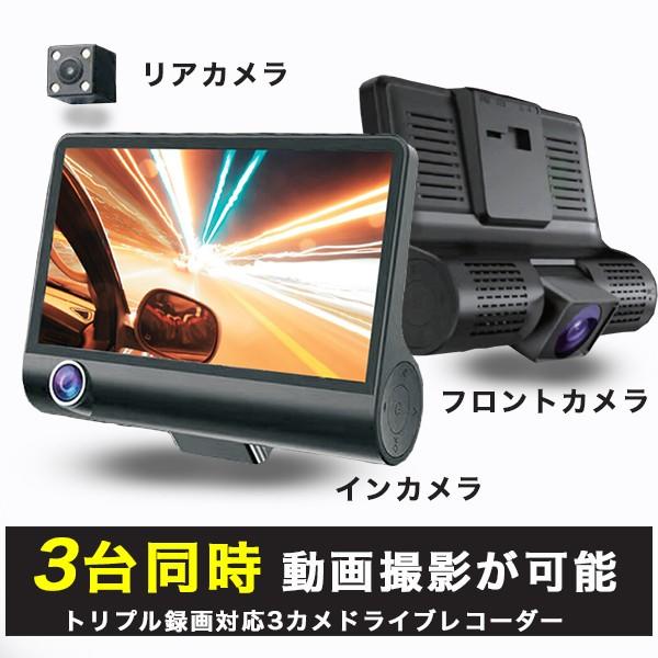 トリプル録画対応3カメラ ドライブレコーダー 動体検知 駐車監視機能 4インチ画面 フロント リア 車載カメラ F Jd Dr360 Fafe 通販 Yahoo ショッピング