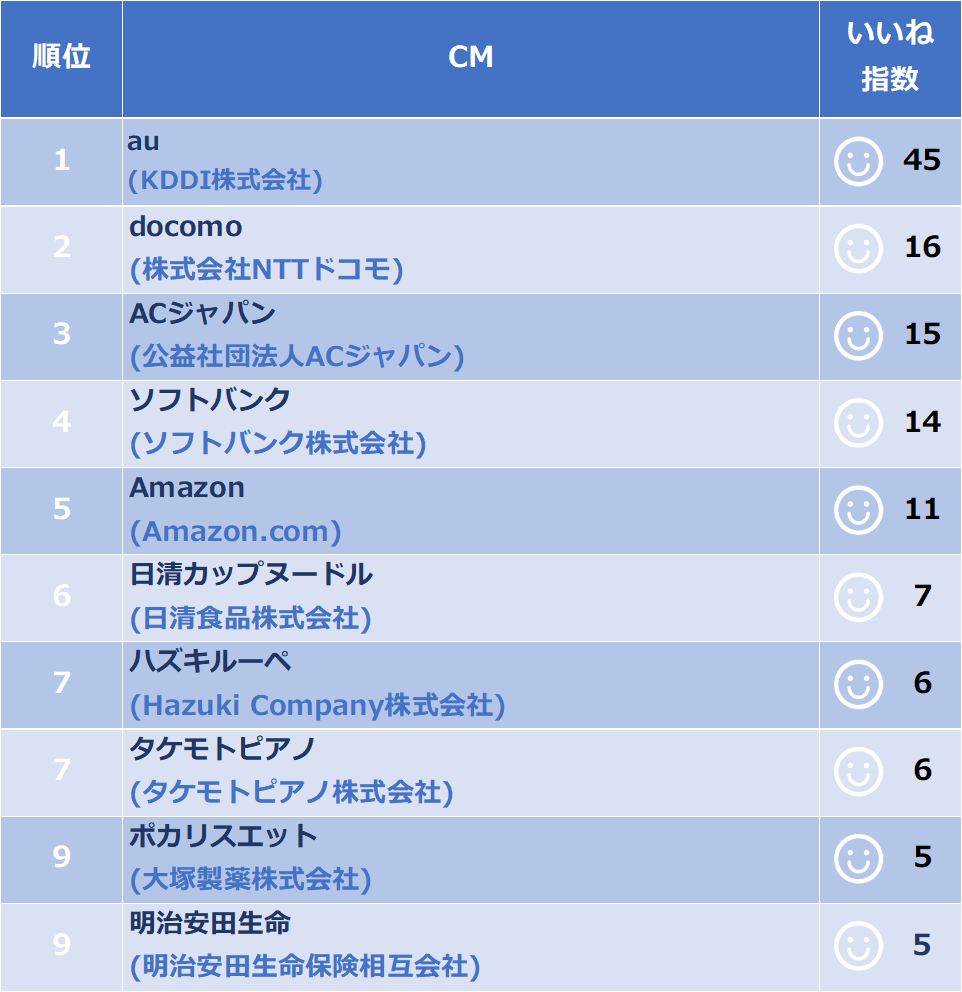 2018年10月下旬 Cmイメージアンケート実施 ランキング集計結果 社名 商品名を覚えたcmは