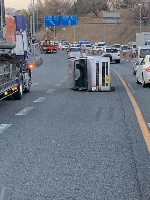 事故 国道1号 下りの横浜市戸塚区矢沢付近で横転事故 そのため1車線規制で渋滞 現地の画像や動画まとめ まとめダネ