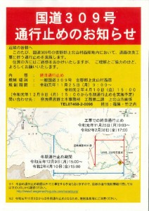 国道309号 通行止めのお知らせ 天川村公式サイト観光ページ