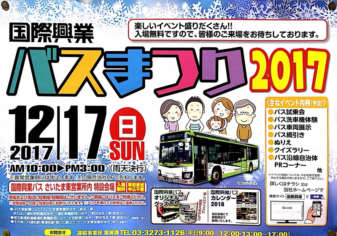 国際興業バスまつり2017が12月17日 日曜日 10時よりさいたま東営業所で開催 戸田市に住むと楽しいな