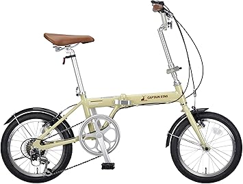 Amazon キャプテンスタッグ Captain Stag Al 16インチ 折りたたみ自転車 アルミフレーム シマノ6段変速 重量約10 6kg 前後v型ブレーキ Shimanoパワーモジュレーター 高ギア比設定 前後泥よけ 標準装備 Al Fdb166 ラテ Yg 1229 キャプテンスタッグ Captain